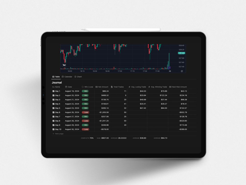 This template comes with a stock chart as soon as you open the page and with a risk amount feature. if you make x amount per day you can only lose half x the following day. this helps me a lot so hope it helps you as well.