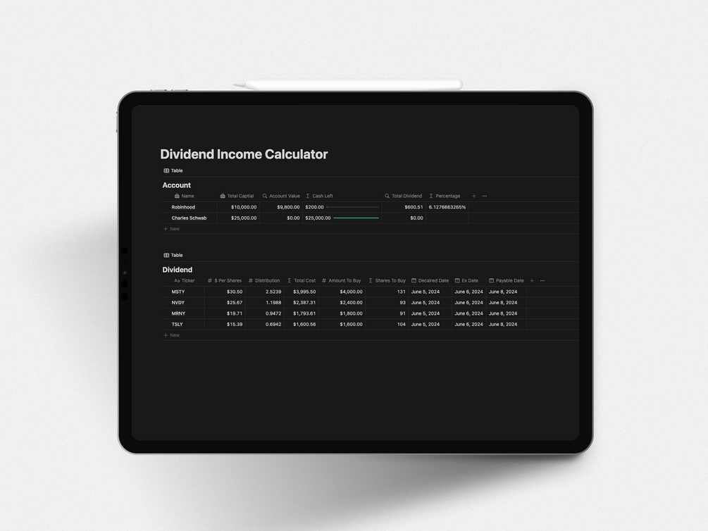 This is a Dividend Income Calculator for notion