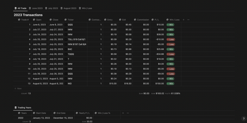 Notion Trading Log