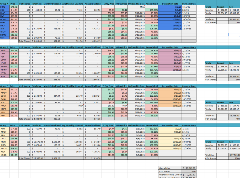 This template have a list of all yieldmax (monthly) current etf to date 6/16/2025.